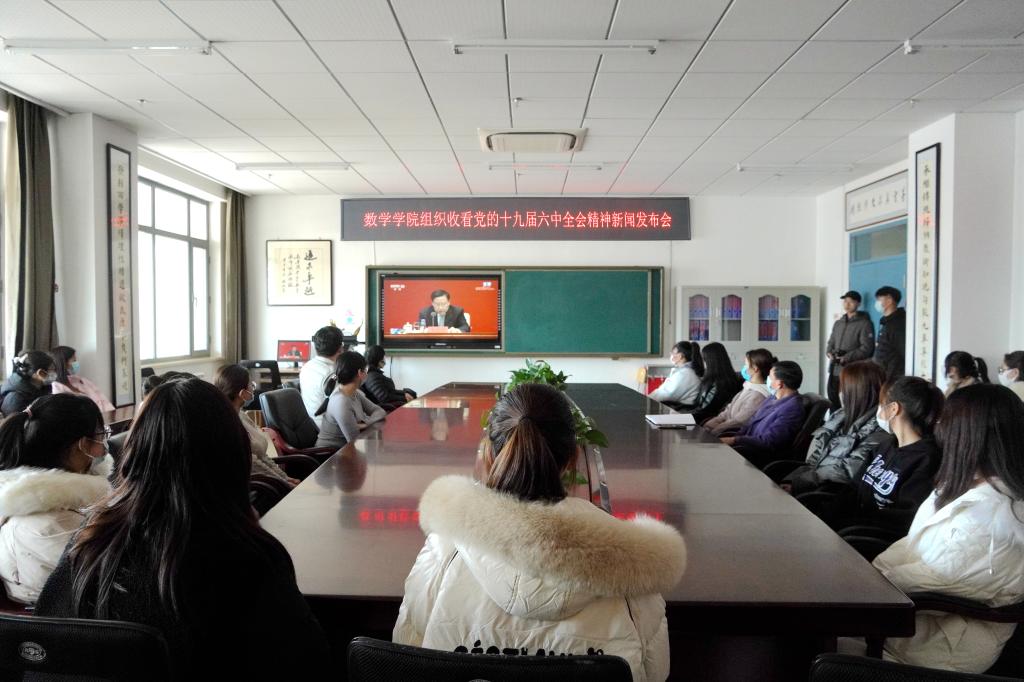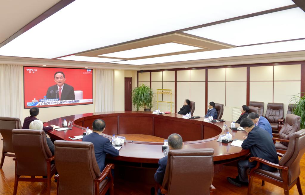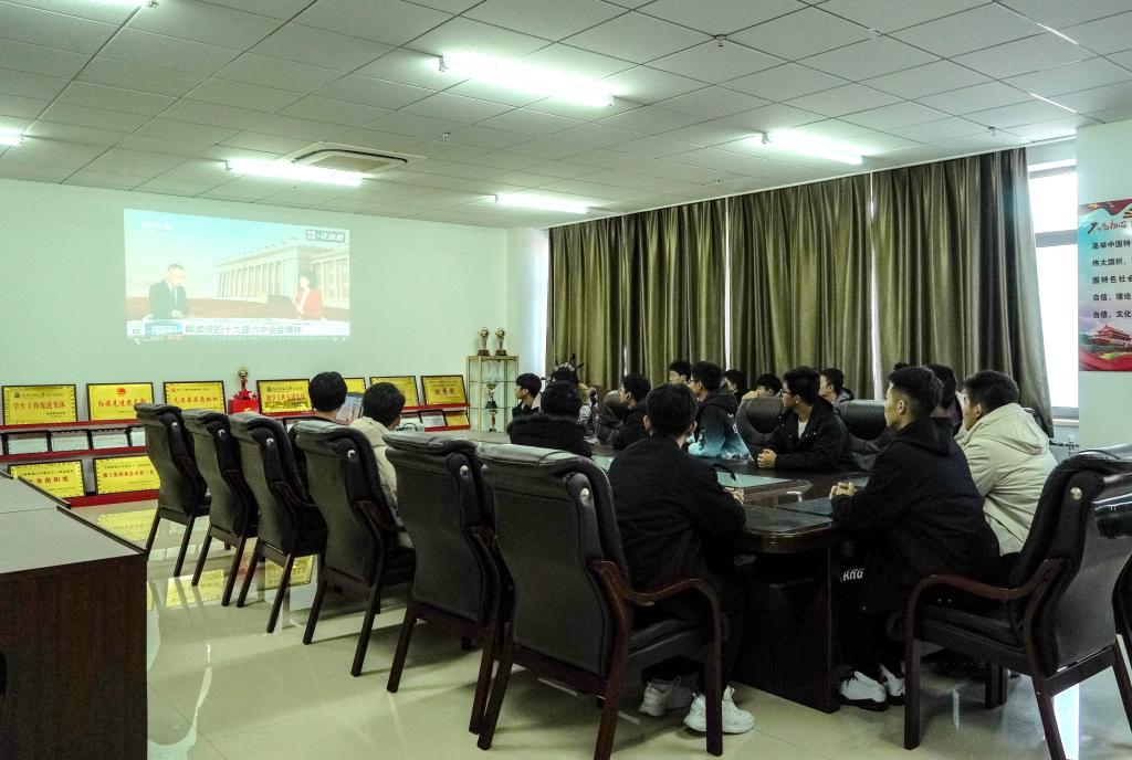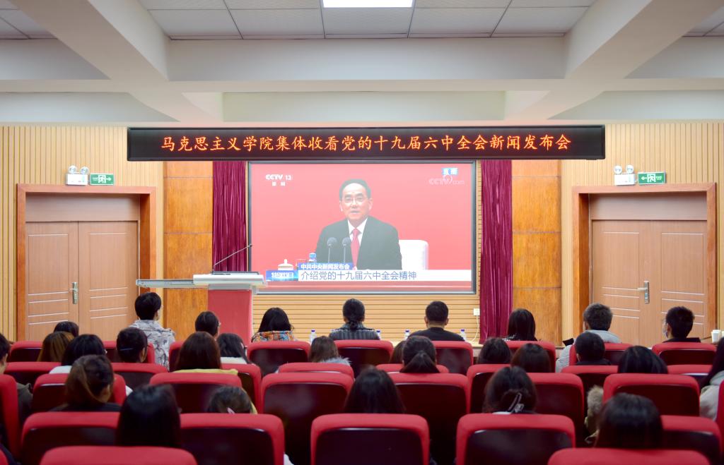 11月12日上午, 中共中央举行新闻发布会,介绍党的十九届六中全会精神,并答记者问。校领导班子在第一教学楼八楼会议室集体收看。学校全体思政课教师、初心筑梦班学生通过线上直播方式收看,其他师生通过视频回放的形式收看。
