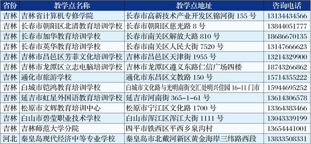 其他地区请咨询当地教学点