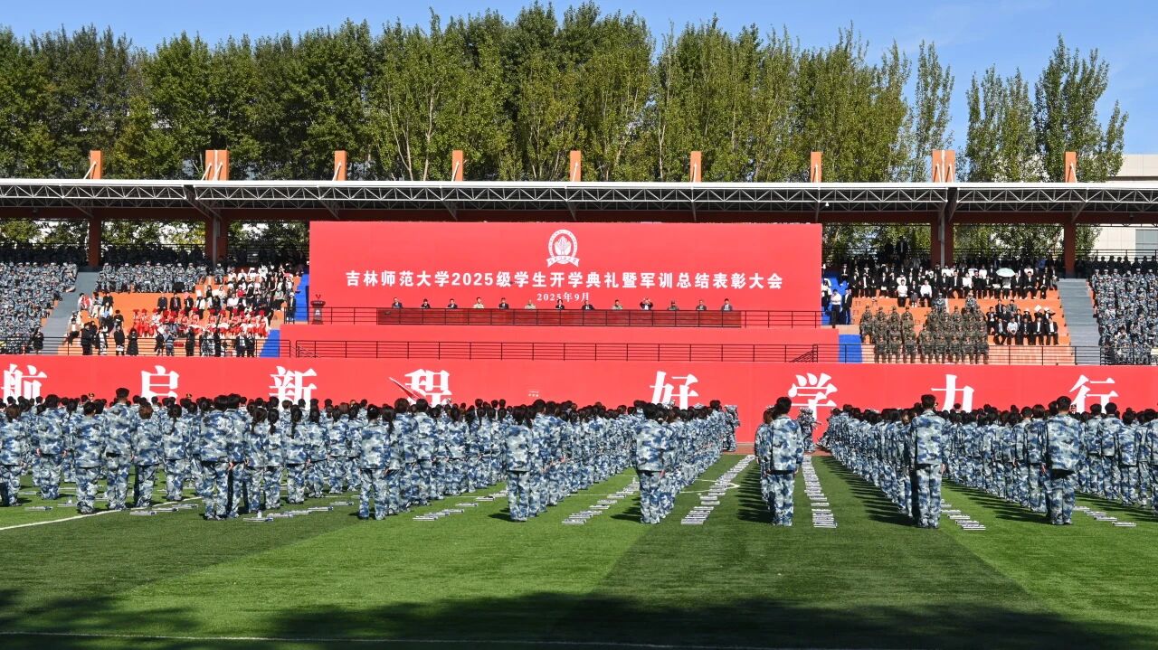 9月17日,秋阳朗照,旌旗飞扬。2025级新生开学典礼暨军训总结表彰大会在田径场隆重举行。党委书记梅丽娜、校长杨小天,党委副书记韩金玉、赵经武,党委常委、副校长左今明、吴振利、邢宇、马光焱、刘新利;四平军分区副司令员虞勇,武警四平支队支队长刁宇鹏,四平军分区政治工作处主任曹祖锋,武警四平支队副参谋长艾超出席活动。各单位党政负责人,政工干部,军训教官,家长代表,校友代表,2025级本科生、研究生、留学生参加活动。韩金玉主持大会。